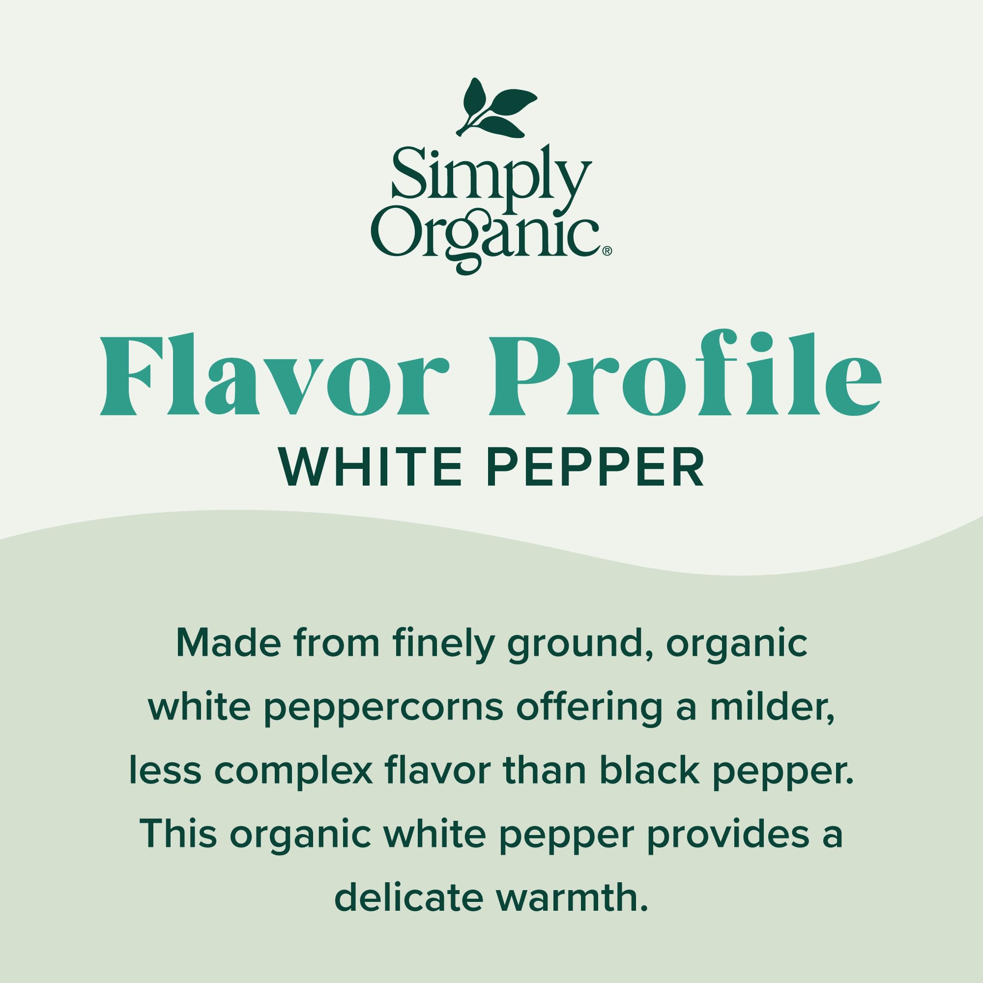 Simply Organic White Pepper, 2.86-Ounce Jar, Lightly Flavor Sauces, Fish, Chicken & Potato Dishes, Milder Earthy Flavor